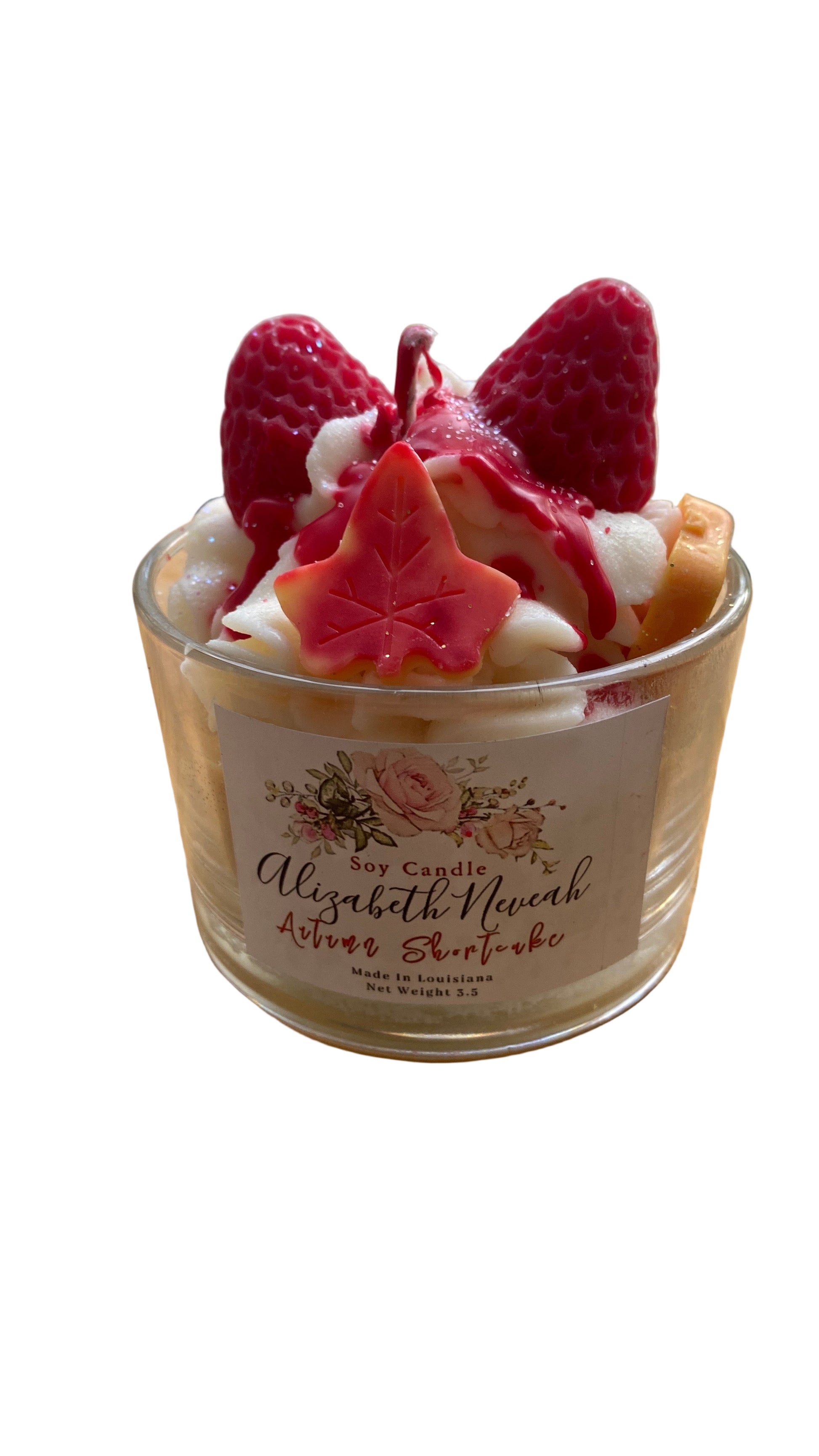 A warm candle blend of sweet strawberries , soft vanilla cake notes, and gentle autumn spices for a cozy seasonal fragrance.